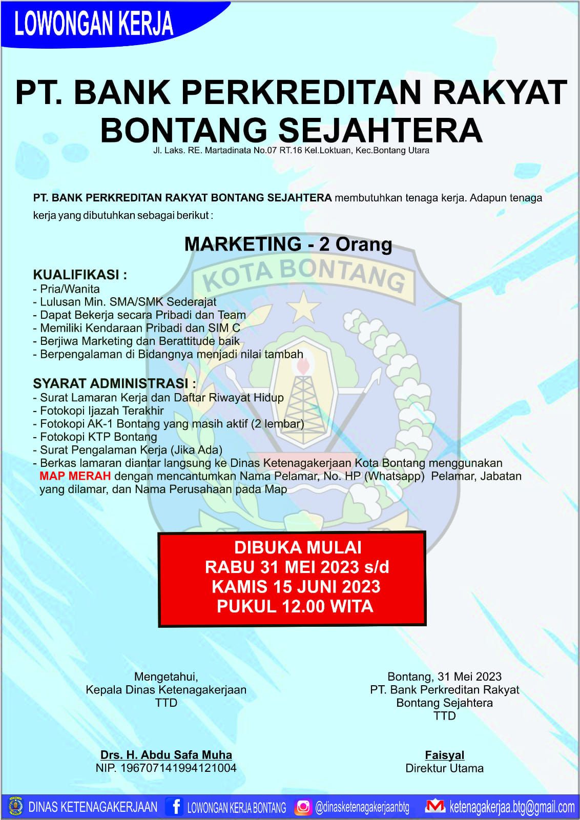 bontangpost.id – PT Bank Perkreditan Rakyat (BPR) Bontang Sejahtera membuka lowongan pekerjaan untuk warga Bontang.