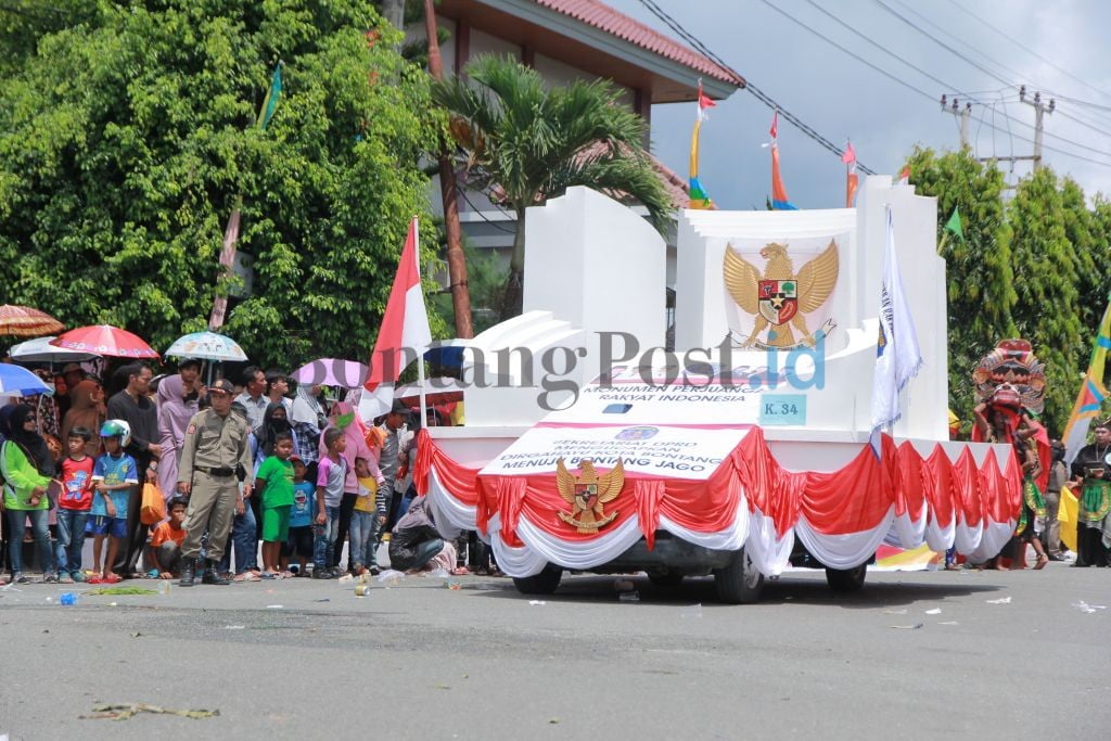 BONTANG – Tak kalah dengan peserta lainnya, Sekretariat DPRD Bontang ikut berpartisipasi dalam gelaran Bontang City Carnival tahun 2017. Mengangkat tema semangat kepahlawanan, mengingat tanggal 10 November merupakan Hari Pahlawan, monument perjuangan rakyat Indonesia pun dibuat di atas mobil hias.