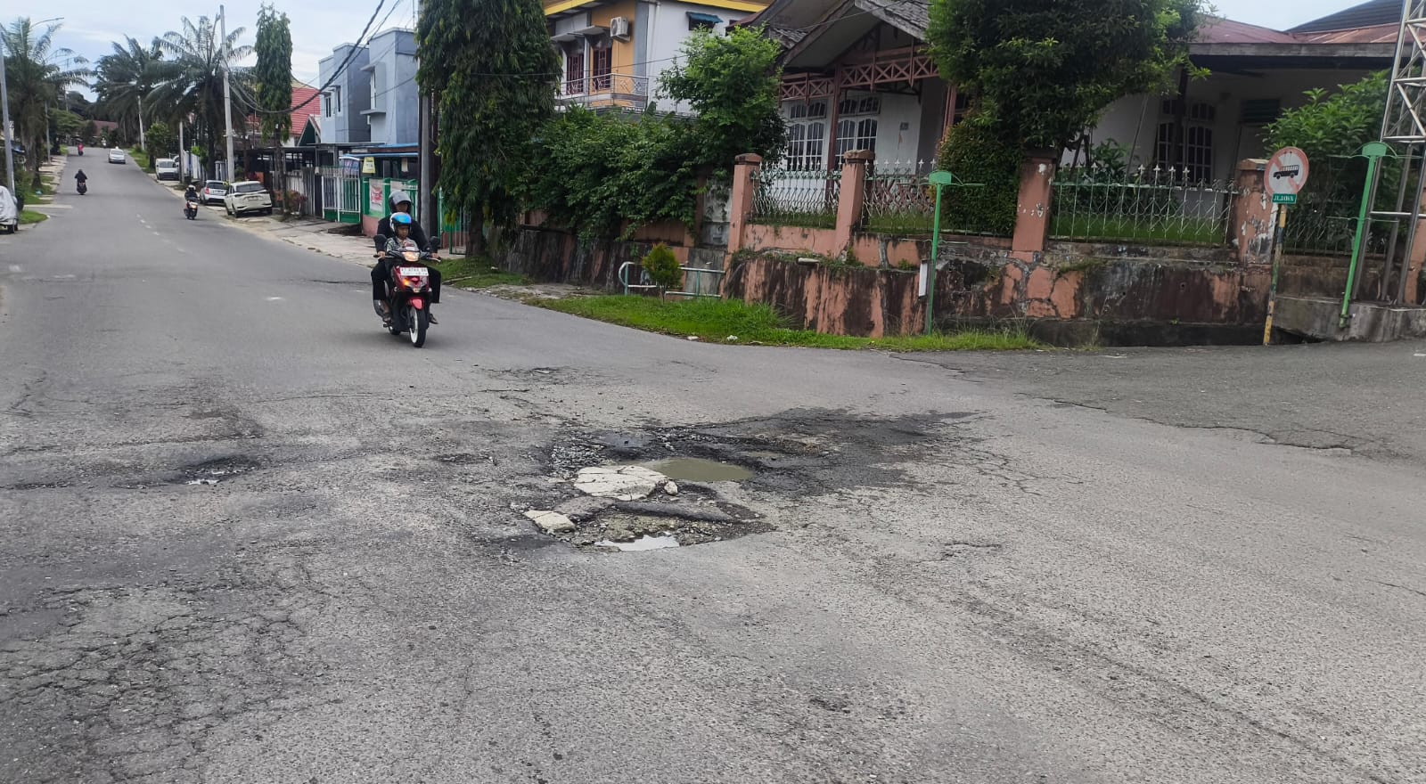 Berdasarkan pantauan di lapangan, lubang berukuran cukup lebar itu berada tepat setelah turunan di simpang tiga Rumah Sakit Yabis. Kondisi tersebut membuat sejumlah pengendara roda dua maupun roda empat harus ekstra waspada saat melintas, Selasa (6/1/2026).