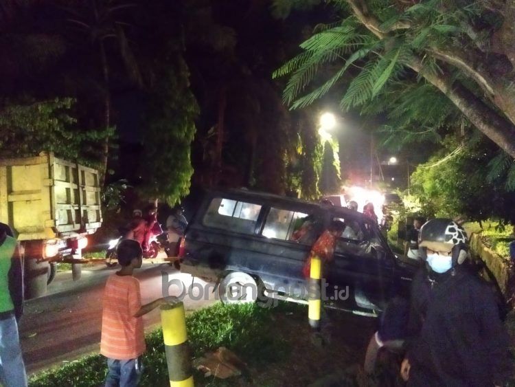 bontangpost.id – Perjalanan Rumpa (50) tak mulus. Mobil yang dikendarainya terperosok ke parit. Dia tidak bisa mengendalikan mobil Kijang KT 1625 DG yang dikemudikannya setelah ditabrak pengendara Scoopy, yang membuat ban mobil pecah.