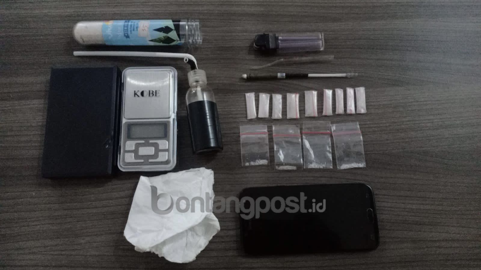 Satrenarkoba pun menyita barang bukti seperti timbangan digital, korek gas, sedotan runcing, pipet kaca, alat hisap, dan ponsel.