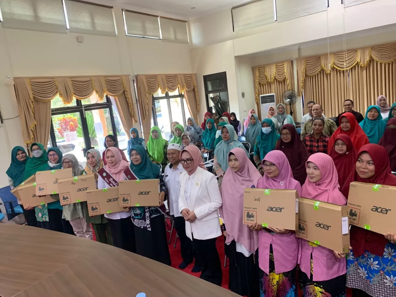 Penyerahan bantuan laptop gratis dari Pemkot Bontang untuk tenaga pendidik pada tahun lalu. (ADIEL KUNDHARA/KP)