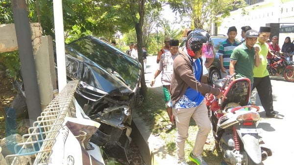 Berdasarkan keterangan saksi di lokasi tabrakan, kejadian bermula saat mobil Xenia dengan nomor pelat KT 1549 DG melaju dengan kecepatan tinggi dari arah Kantor Wali Kota lama, sekira pukul 12.30 Wita. Karena mengemudi dengan kecepatan tinggi, pengemudi Xenia hitam NS (26), tidak bisa mengontrol kendaraannya. Sehingga kendaraan pun melewati marka jalan.