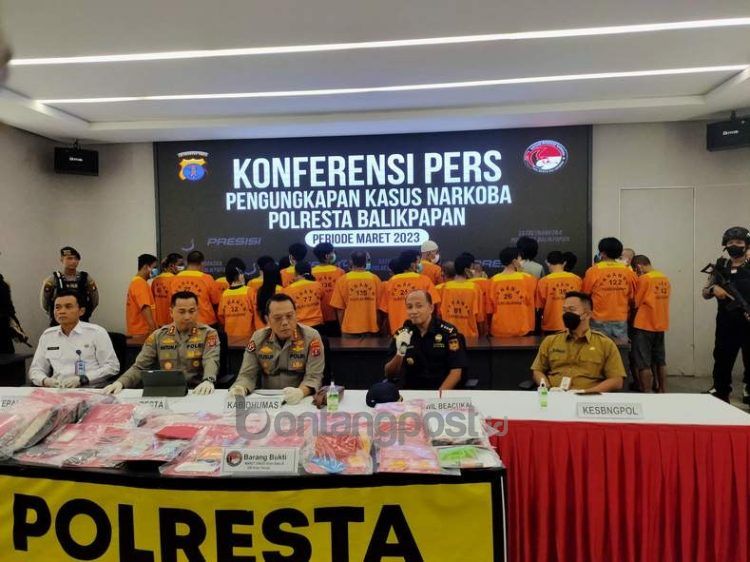 bontangpost.id – Peredaran narkoba di Balikpapan semakin mengkhawatirkan. Sepanjang Maret 2023, Polresta Balikpapan menangani 35 kasus penyalahgunaan narkoba dengan jumlah pelaku yang ditangkap sebanyak 42 orang. Terdiri dari 37 tersangka laki-laki dan 5 pelaku lainnya perempuan.