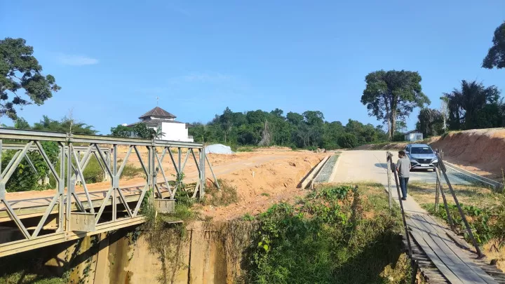 Infrastruktur jembatan yang menghubungkan Jalan Pupuk Raya dengan Tari Dewa-Dewa masih menggunakan bailey saat ini, rencananya akan dibangunkan jembatan permanen. (ADIEL KUNDHARA/KP)