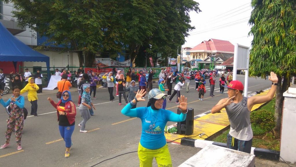 “Bunda mengajak kita semua untuk hidup sehat melalui Germas (Gerakan Masyarakat Hidup Sehat, Red.). Rajin makan buah dan sayuran, serta rutin melakukan cek kesehatan,” ajak Neni di hadapan peserta senam yang didominasi kaum hawa tersebut.