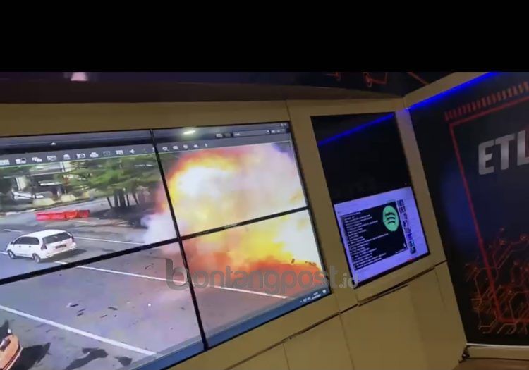 Di trotoar terlihat ada sekitar 4 orang yang berjalan. Setelahnya tampak 1 unit mobil warna putih melintas dan sedetik kemudian ledakan terjadi yang belum diketahui sumbernya dari mana. Setelahnya asap putih membubung tinggi.