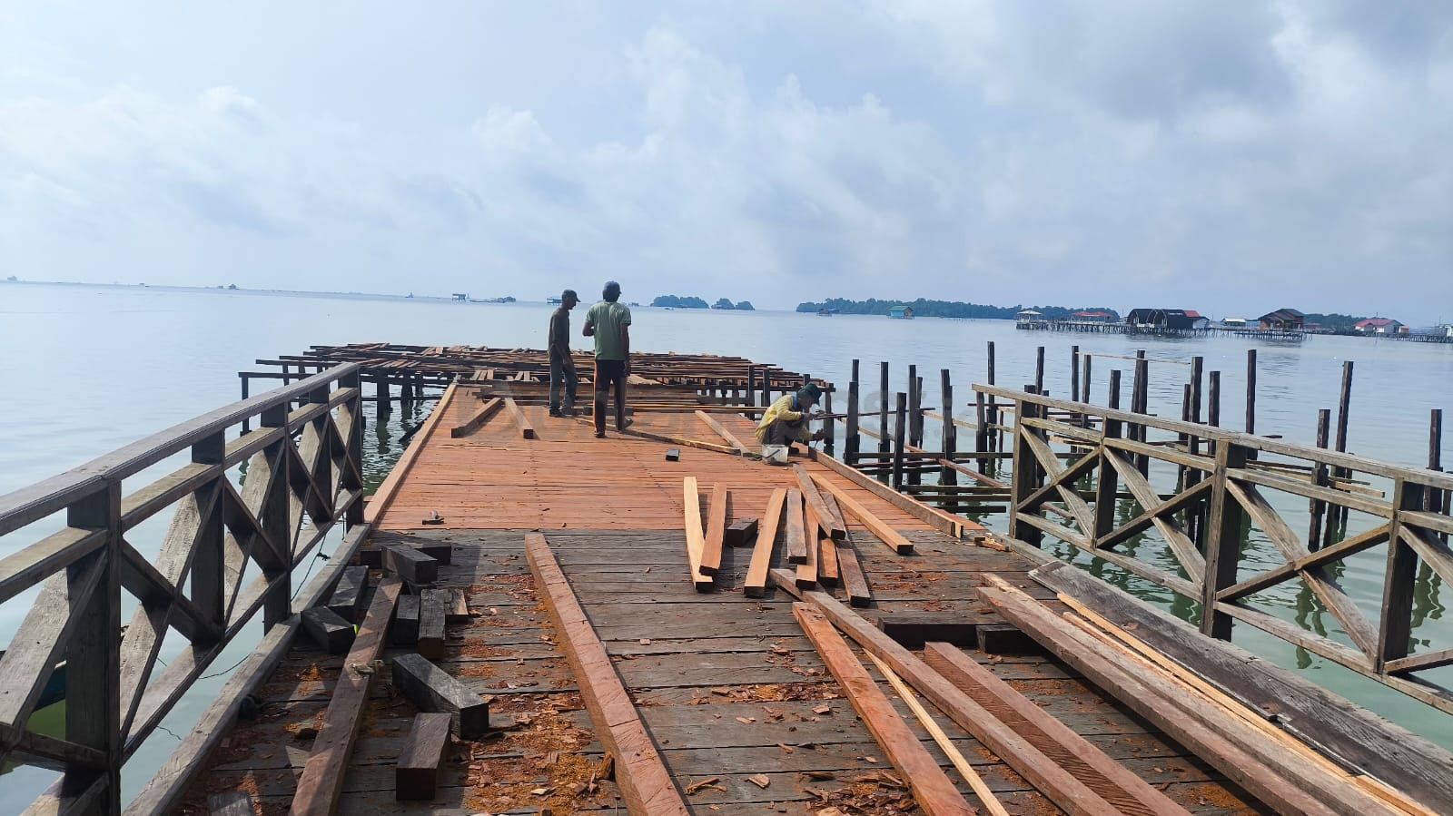 “Kami mulai dari musala karena posisinya dekat dermaga. Senin besok baru mulai pekerjaan kios dan panggung,” terangnya
