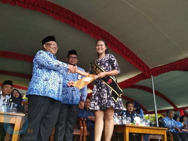 RAIH PENGHARGAAN: Pemkab Kutim, memberikan penghargaan kepada para pemuda di Kutim, lantaran prestasinya. Salah satunya Putri Pariwisata Kutim.(Dhedy/Sangatta Post)