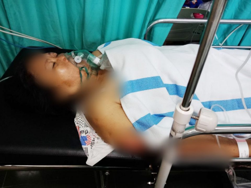 Sementara itu, awak media ini dilarang petugas rumah sakit untuk bertemu dengan Sulastri, dengan tanpa alasan. Dari balik pintu ruangan, terlihat, tubuh Sulastri terbaring lemas di atas kasur rumah sakit. Mulutnya ditutupi masker oksigen. Kedua tangan Sulastri melepuh.