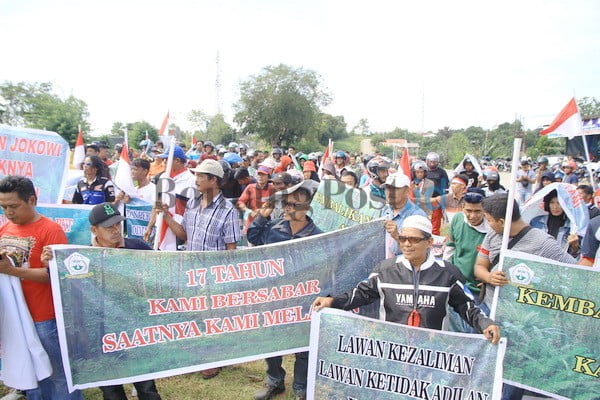 Sebelumnya para anggota kelompok tani melakukan unjuk rasa untuk mengeluarkan aspirasi mereka yang telah menanti selama 17 tahun. Setelah habis kesabaran, mereka melakukan aksi di simpang 3 Jalan menuju Hotel Equator sejak pukul 08.00 Wita. Orasi pun disampaikan, hingga beberapa perwakilan dari massa pun diminta duduk bersama untuk mediasi.