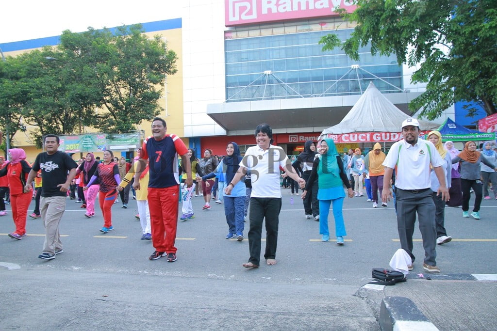 BONTANG – Senam sehat di arena Car Free Day (CFD) di Jalan MH Thamrin, depan Plaza Taman pada Ahad (12/2) berlangsung semarak. Digelar mulai pukul 06.30 Wita, kegiatan senam rutin garapan Bontang Post bekerja sama Polres Bontang dan Pemkot Bontang ini diikuti sekira 300-an warga dari berbagai daerah di Bontang. Kegiatan ini disebut-sebut ikut memasyarakatkan olahraga bagi masyarakat Kota Taman.