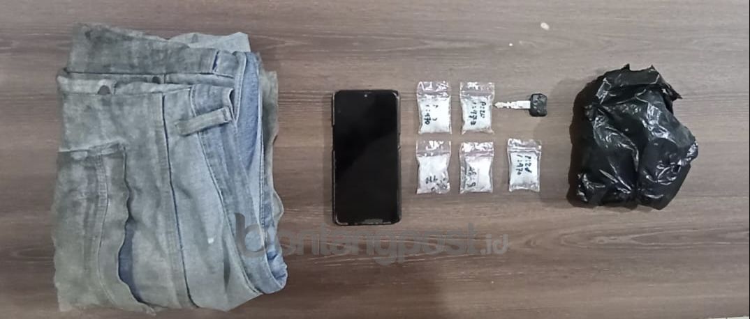 Selain sabu polisi turut menyita celana jeans, ponsel, sepeda motor, dan plastik berwarna hitam.