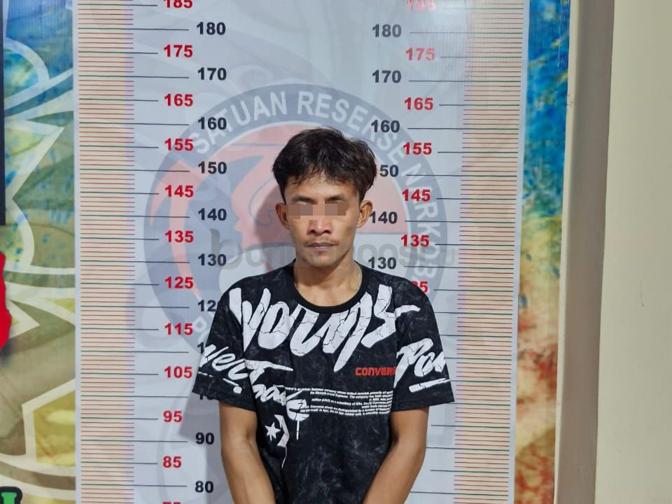 “Saat dilakukan penggeledahan, kami menemukan empat bungkus plastik bening berisi kristal putih diduga sabu seberat 1,35 gram bruto, satu dompet hitam, satu sedotan berujung runcing, dan satu alat hisap atau bong,” katanya.