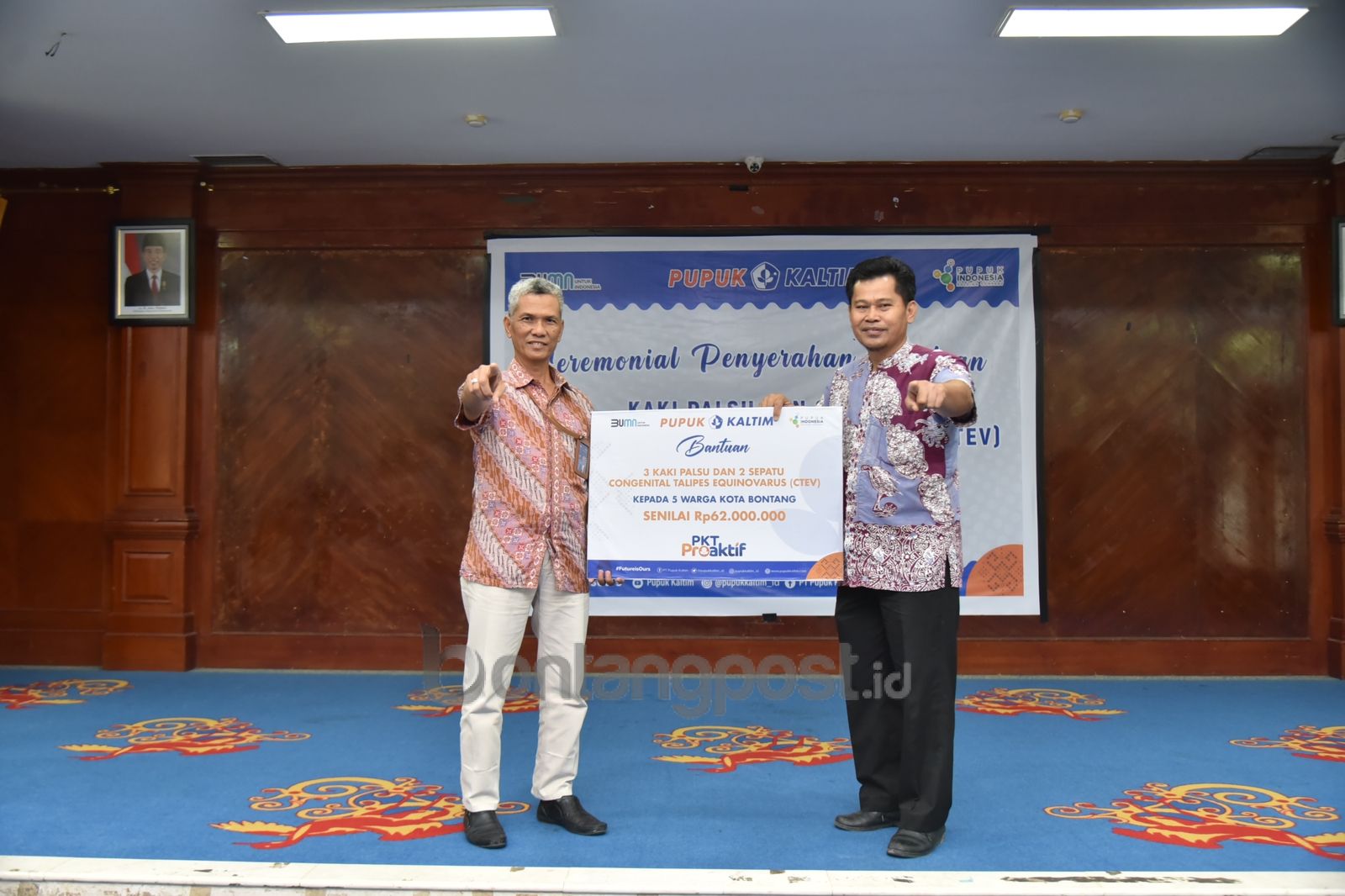 bontangpost.id – PT Pupuk Kalimantan Timur (Pupuk Kaltim) salurkan bantuan tiga unit kaki palsu dan dua sepatu Congenital Talipes Equinovarus (CTEV) bagi lima penyandang disabilitas di Kota Bontang. Bantuan diserahkan simbolis Manajemen Pupuk Kaltim melalui VP Keamanan Adi Aryanto, di Auditorium Tiga Dimensi Pemkot Bontang, Kamis (19/1/2023).