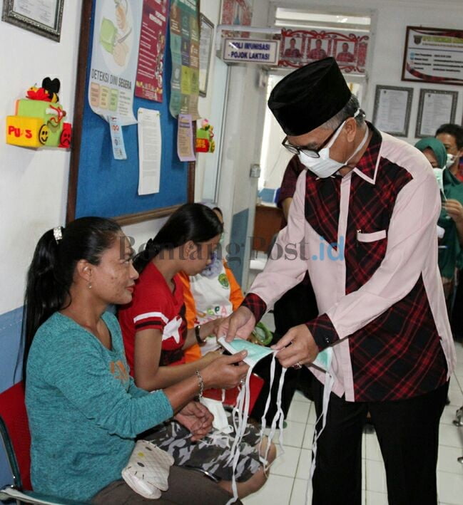 PEDULI KESEHATAN: Wali Kota Samarinda Syaharie Jaang (berkacamata) mengunjungi beberapa puskesmas sembari membagi-bagikan masker gratis kepada warga, Kamis (18/1) kemarin.(HUMAS PEMKOT FOR METRO SAMARINDA)