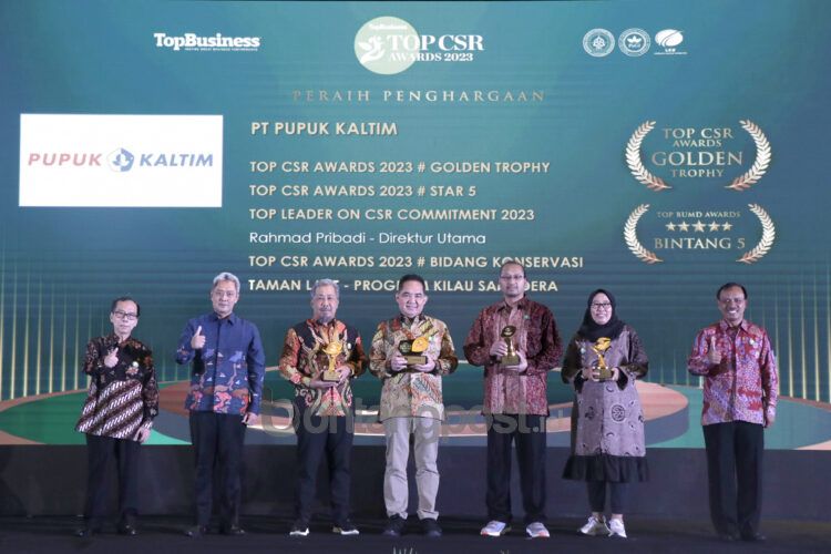 bontangpost.id – PT Pupuk Kalimantan Timur (Pupuk Kaltim) raih empat penghargaan TOP CSR Awards 2023 dari majalah TOP Business, atas komitmen realisasi Tanggung Jawab Sosial dan Lingkungan (TJSL) perusahaan di berbagai sektor secara optimal. Penghargaan diterima SEVP Business Support Pupuk Kaltim Meizar Effendi, di Ballroom Rafles Hotel Jakarta, Rabu (7/6/2023).