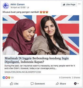 Jadi, jika Anda menemukan artikel di atas, jangan terburu ngiler untuk berangkat ke Inggris. Sebab, tidak semua perempuan muslim di sana berbondong-bondong ingin dipoligami. Tetapi, kalau Anda ingin uji nyali, ya boleh share artikel di atas ke nomor WhatsApp pasangan Anda, hehehe. (gun/c14/fat)