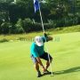 Disaksikan 3 golfer dalam satu pairing, ia pun mengarahkan pukulan ke pin (bendera). Begitu bola jatuh ke green, bola menggelinding pelan-pelan dan mengarah ke lubang. Ia pun langsung beteriak begitu melihat dari jauh, bola yang dia pukul tadi masuk ke lubang. “Hole in one,’ teriaknya.