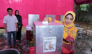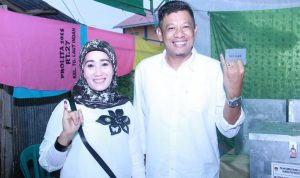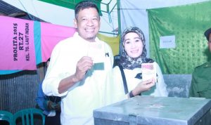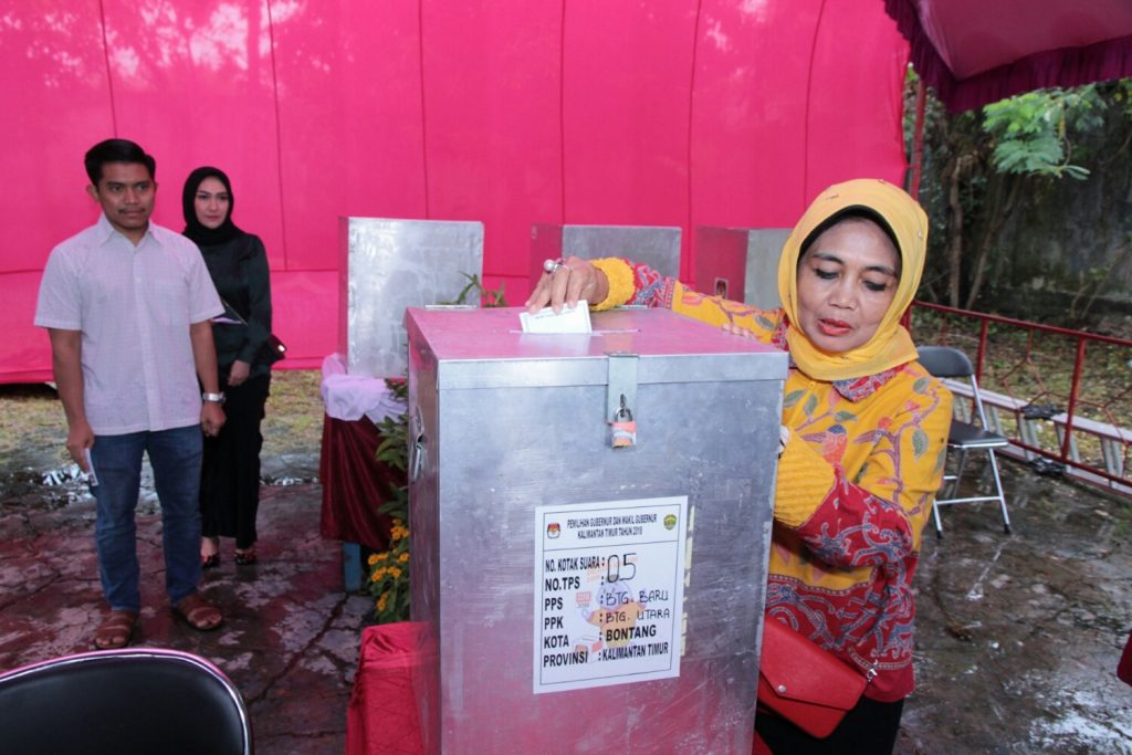 BONTANG – Wali Kota Bontang Hj Neni Moerniaeni didampingi suaminya H Andi Sofyan Hasdam serta putranya Andi Faiz Hasdam sekitar pukul 08.30 Wita kemarin memberikan hak suaranya pada pemilihan Gubernur Kaltim dan Wakil Gubernur Kaltim di Tempat Pemungutan Suara (TPS) 05 Kelurahan Bontang Baru, Kecamatan Bontang Utara rabu (27/6) Kemarin