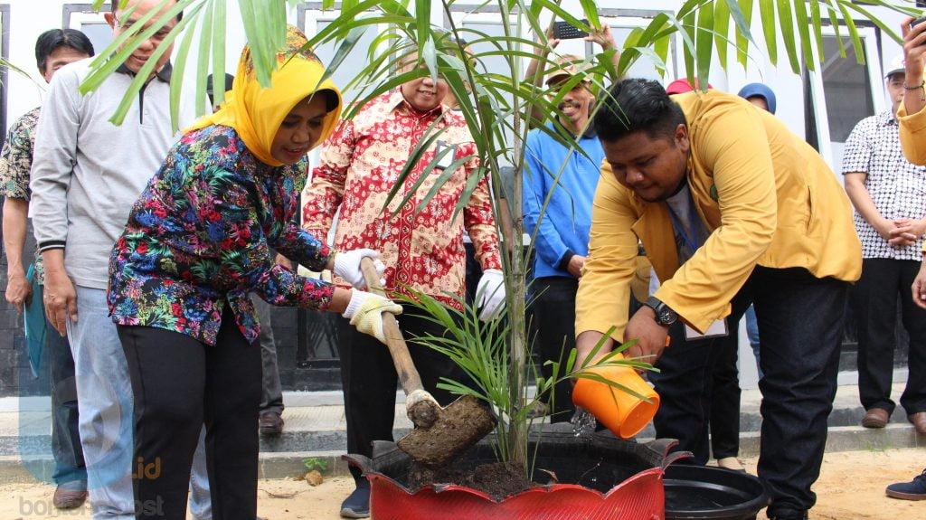BONTANG – Wali Kota Bontang Neni Moerniaeni mengikuti aksi penanaman seribu pohon yang digelar mahasiswa Kuliah Kerja Nyata (KKN) Universitas Mulawarman (Unmul), Jumat (10/8) lalu. Kegiatan yang digelar di Unit Pelaksana Teknis (UPT) Balai Benih Ikan Pantai (BBIP) Tanjung Laut Indah, Jalan Pelabuhan 3 RT 14 Kelurahan Tanjung Laut Indah ini merupakan hasil kerja sama antara Unmul dan Kementerian Pekerjaan Umum dan Perumahan Rakyat (PUPR).